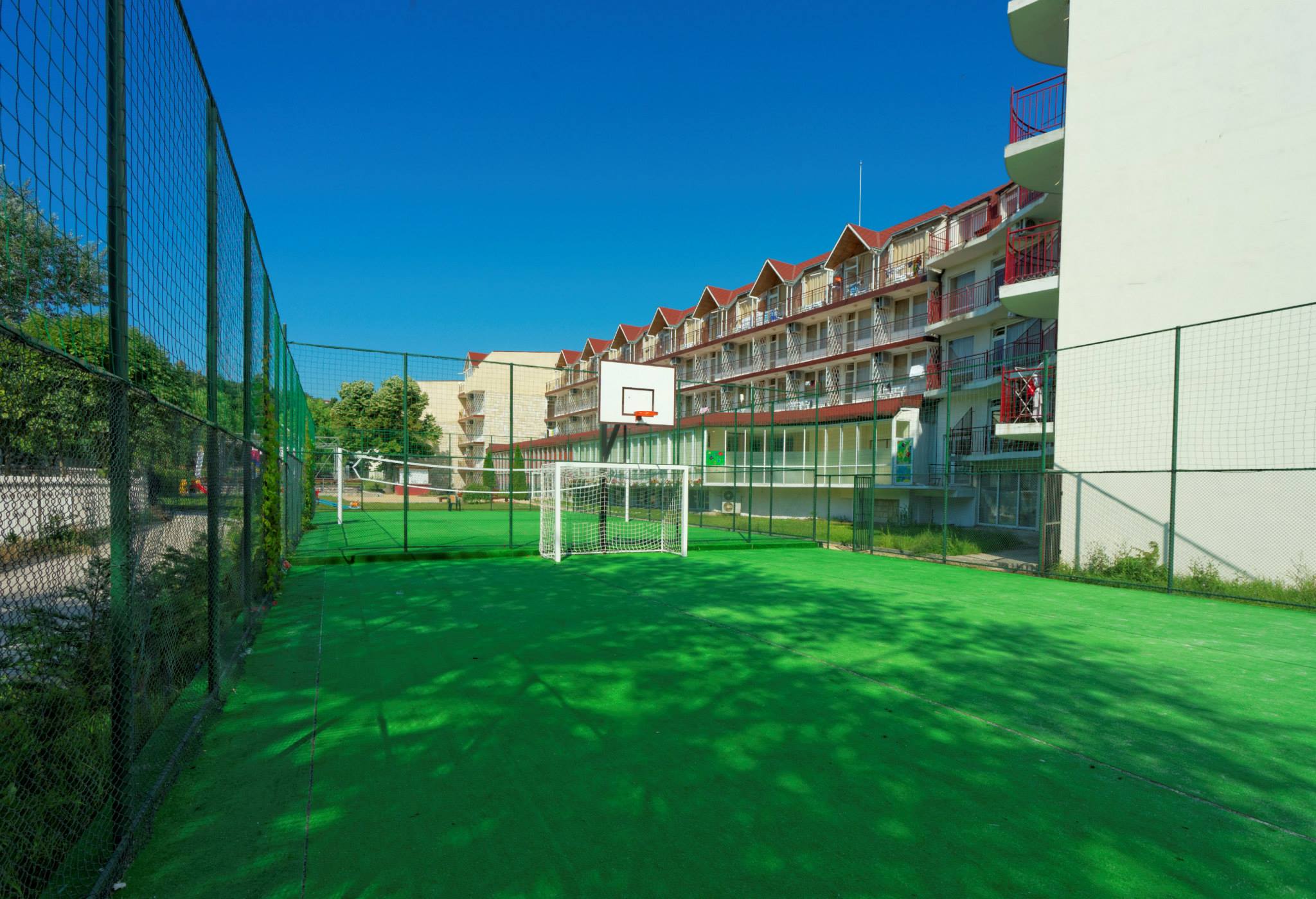 Намира се на 250 метра от шест километровата плажна ивица на курорта Албена и Кранево. Разполага с 90 стаи с три легла и за настаняване на деца и младежи и 20 стаи с две легла за ръководители.